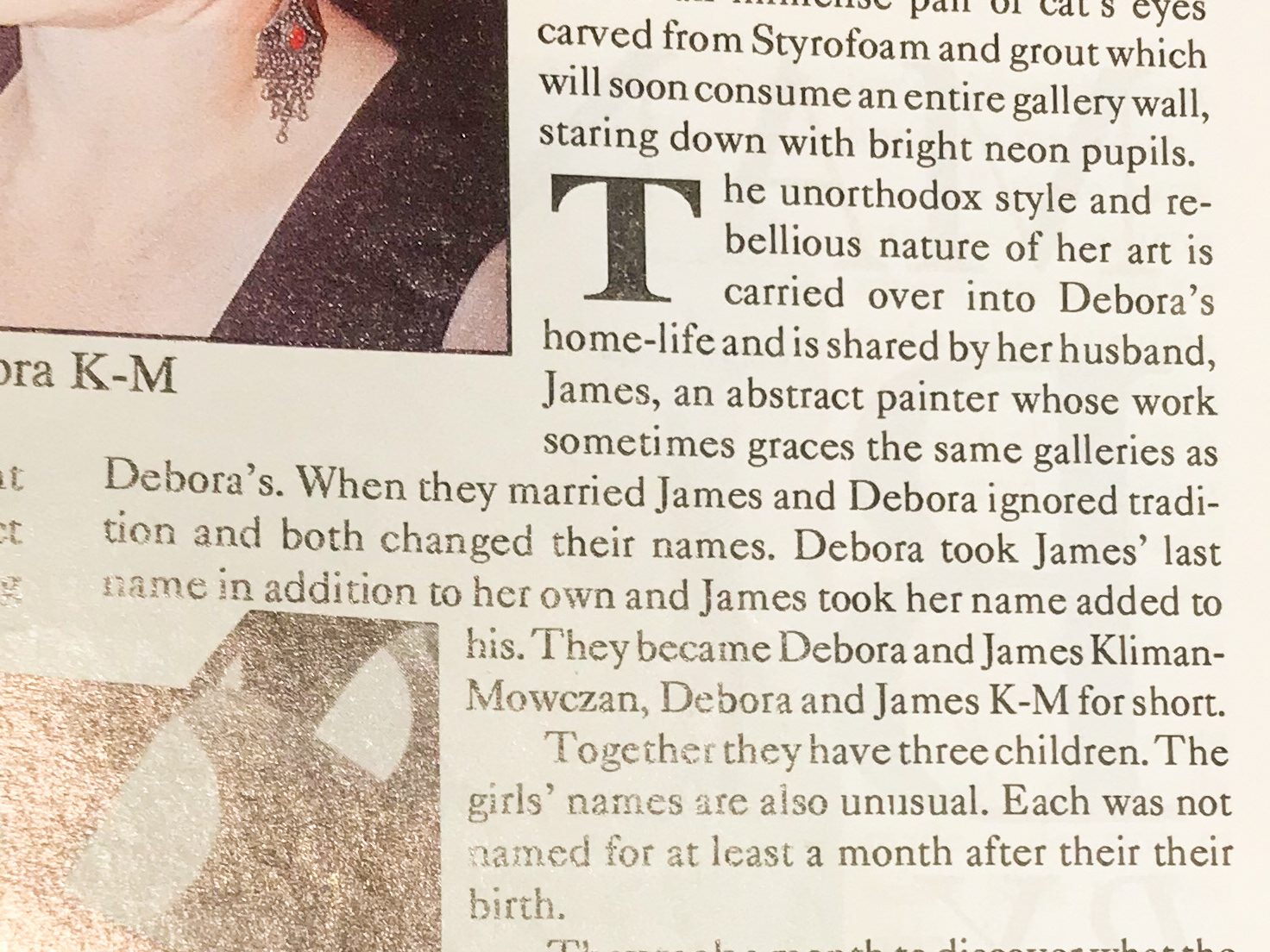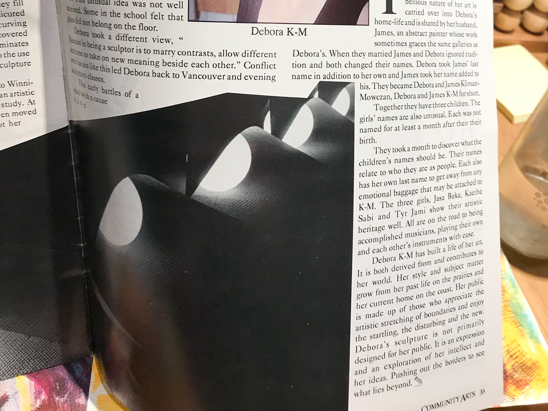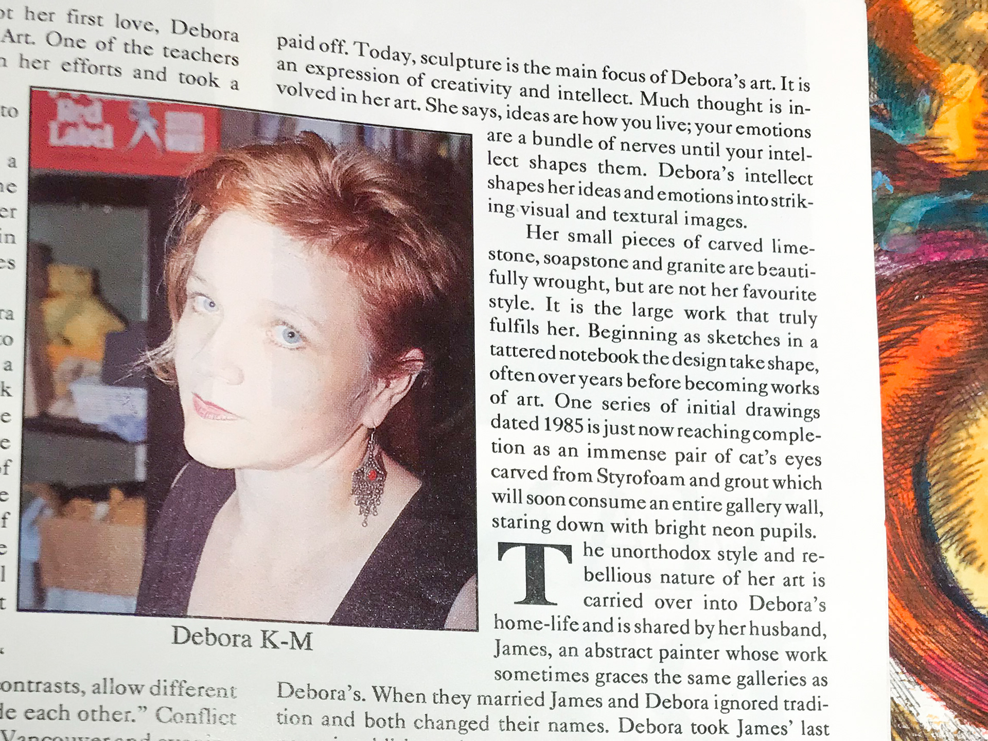 "Her public is made up of those who appreciate the artistic stretching of boundaries and enjoy the startling, the disturbing and the new. Debora's sculpture is not primarily designed for her public. It is an expression and an exploration of her intellect and her ideas. Pushing out the borders to see what lies beyond."