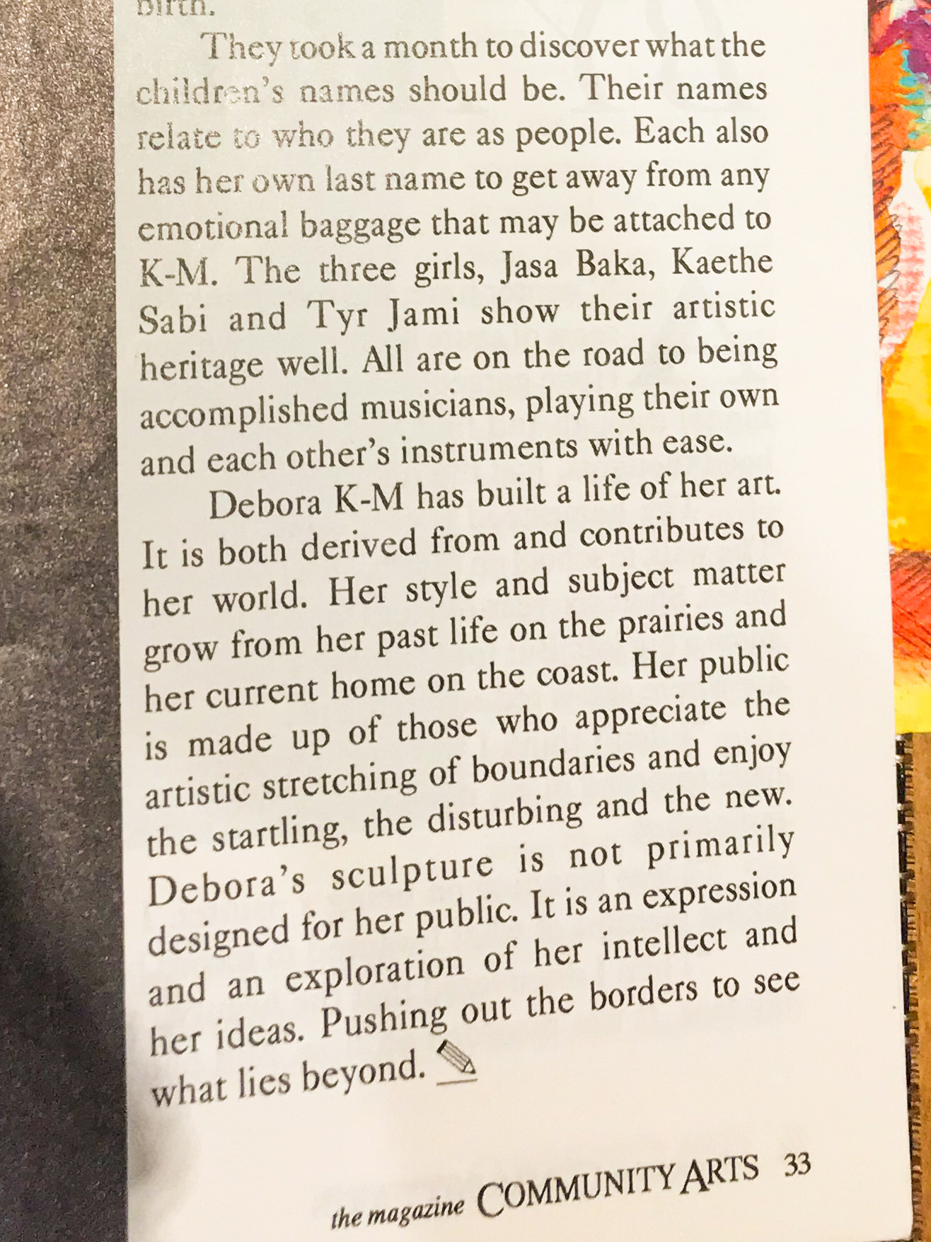 -Debora Alanna, Community Arts Magazine, Taking It To The Limits, By Andrew J Burton