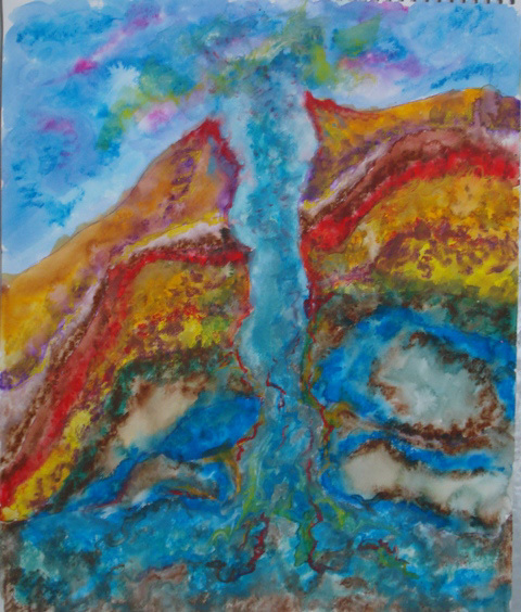"When a landscape of ones devising" 10 x 14" on paper Mixed Media (water colour with water soluble wax pastels