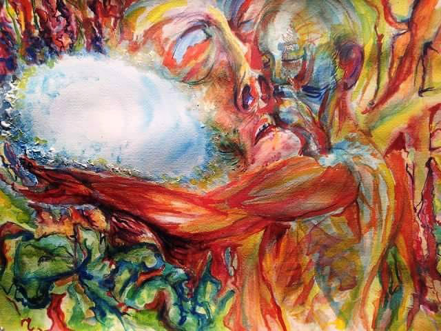 "Dream awake" 10 x 14" on paper Mixed media - watercolour with water soluble wax pastels